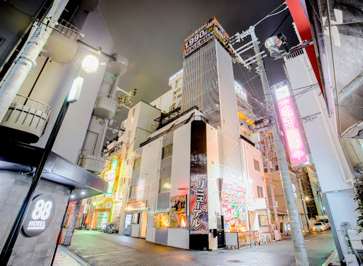 大阪難波駅各線から徒歩3分の場所にあるホテルどないやねん。ホテルなんでやねんのすぐ隣にあり、入室は入り口のパネルを操作して行えるので、人目を気にせずにご利用いただけます。